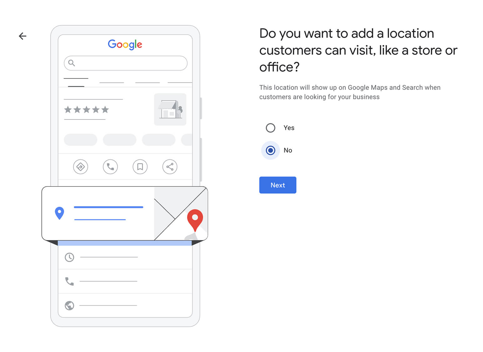 When asked if you want to add a location customers can visit, select No.